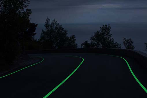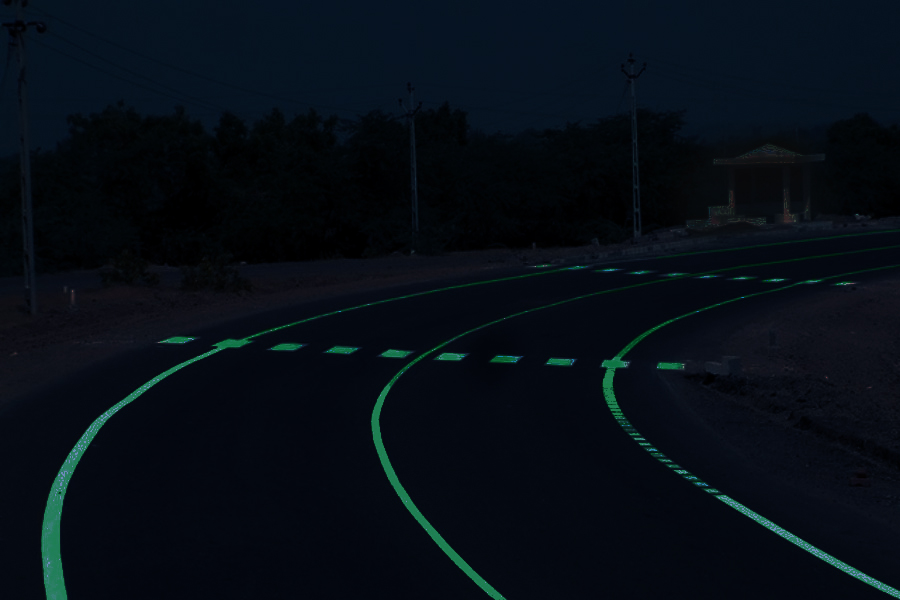 Intersection areas can be marked with light-emitting material to highlight crosswalks, stop lines, and other critical markings.