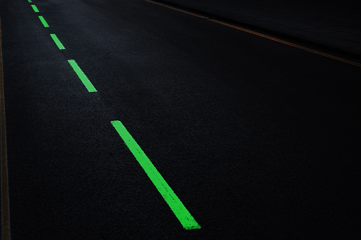 Light-emitting road markings can be applied to clearly define lane boundaries, including solid lines, dashed lines, and turn lanes.